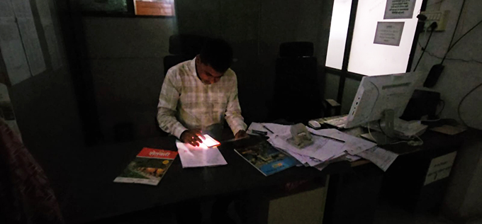शहादा (सलाउद्दीन लोहार) : अवघ्या ४ हजार ३५० रुपयांचे वीजबिल न भरल्याने शहादा तालुका कृषी अधिकारी कार्यालयाची वीज खंडित करण्यात आल्याची धक्कादायक बाब समोर आली आहे. परिणामी, कार्यालयातील कर्मचाऱ्यांवर मोबाईल टॉर्चच्या प्रकाशात काम करण्याची वेळ आली असून, ही कामे लवकर होत नसल्याने कृषी योजनांसाठी येणारे शेतकरी व नागरिकांना कामासाठी ताटकळत बसावे लागत असल्याचे चित्र पाहायला मिळत आहे.