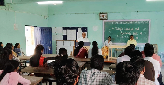 पूज्य साने गुरुजी विद्या प्रसारक मंडळाच्या शिक्षण शास्त्र महाविद्यालयात ‘टुडेज लाइफस्टाईल अँड आयुर्वेदिक डाएट’ या विषयावर प्रा. पाटील यांचे विशेष व्याख्यान आयोजित करण्यात आले होते. कार्यक्रमाच्या अध्यक्षस्थानी महाविद्यालयाच्या प्राचार्या डॉ. सौ. किर्ती महाडिक होत्या. व्यासपीठावर प्रा. डॉ. सौ. जागृती पवार, प्रा. ए. जे. पाटील, प्रा. मोनिका गावित, प्रा. माधवी पाटील आदी उपस्थित होते.