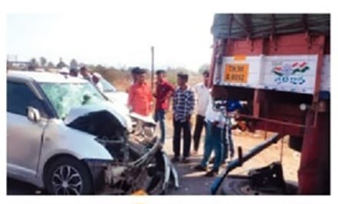 सूत्रांनी दिलेल्या माहितीनुसार, नवापुरच्या श्री शिवाजी हायस्कूल व कनिष्ठ महाविद्यालयातील प्राध्यापक किरण भट (40, रा. मंगळदास पार्क, नवापूर, जि. नंदुरबार) हे सोमवारी (दि. 1) दुपारच्या सुमारास आपल्या कुटुंबियांसह जळगाव जिल्ह्यातील धरणगाव या मुळ गावाहून धुळेमार्गे नवापुरकडे निघाले होते. या कुटुंबाचा प्रवास एमएच 02 – 8462 या कारमधून सुरू होता. त्याचवेळी या कारच्या समोर टीएन 90 डी 8952 या क्रमांकाचा ट्रक चालला होता. दरम्यान दहिवेल परिसरात महामार्गावर या ट्रकच्या स्टेपनीचे टायर निखळून रस्त्यावर पडले. यामुळे कारचालक किरण भट गोंधळून गेले. त्यांनी तातडीने कार एका बाजूला वळवली. याच दरम्यान ट्रकचालकानेही जोरदार ब्रेक मारून एका हॉटेलजवळ डिव्हायडरच्या बाजूला अचानक ट्रक थांबवला. या सगळ्यामध्ये कारचालकाचा गोंधळ अधिकच वाढला आणि कार थेट ट्रकच्या मागच्या भागावर जावून आदळली. ही धडक इतकी भीषण होती की कारच्या समोरील भागाचा अक्षरश: चक्काचूर झाला.