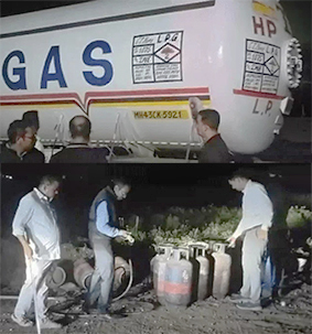 * दोन महाकाय टँकर : क्र. एमएच ४३ सीके ५९२१ आणि एमएच ४३ सीके ५७४७ (एकूण ३५ हजार २२० किलो गॅस).